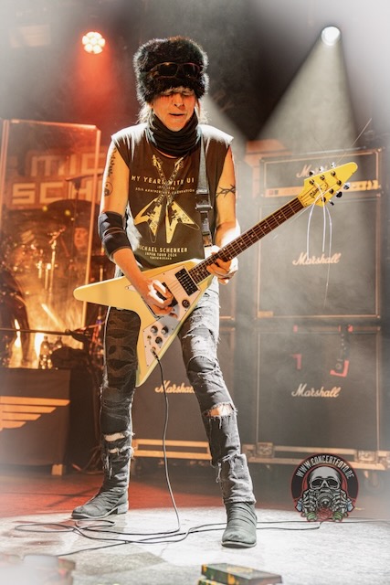 Mister Flying V ist im Haus. So könnte man sicherlich titeln und es beschreibt aber sehr genau, was man an diesem Abend bekommt. Michael Schenker, der vermutlich nicht mal weiß, dass es andere Gitarrenformen, als die „V“ – von welchem Hersteller auch immer – gibt. Nach 18 exklusiven Jahren mit Dean Guitars wechselte Schenker 2023 wieder zurück zu den Wurzeln: Wie schon in den 70ern ist er jetzt wieder mit den originalen Gibson Flying V zu sehen und hören.